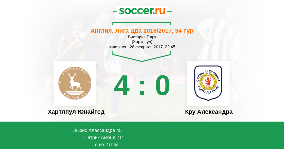 | Хартлпул Юнайтед | 13:21 | 8:6 | 5:15 |