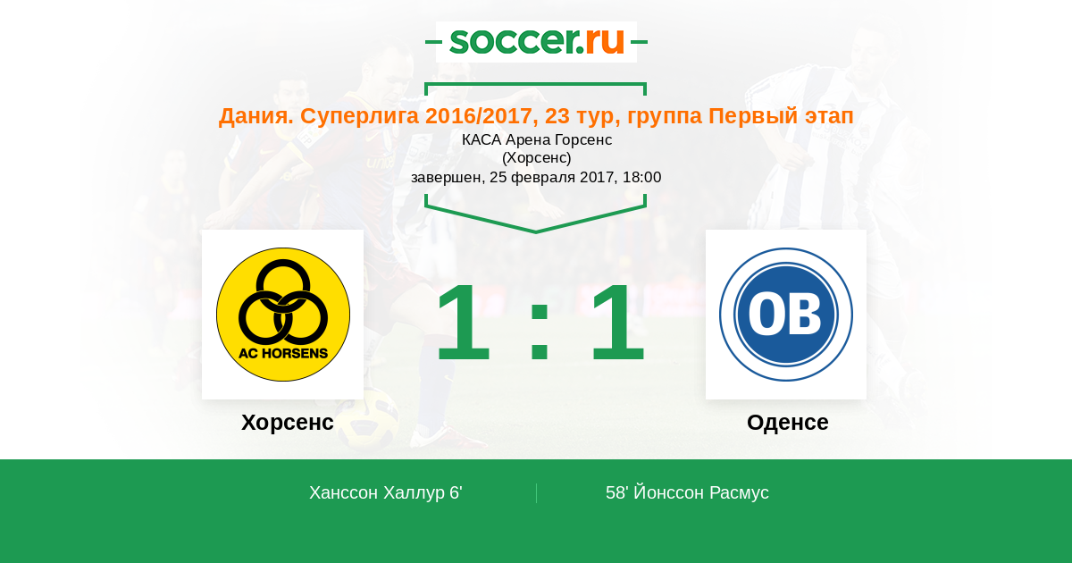 | Хорсенс | 49:77 | 34:33 | 15:44 |