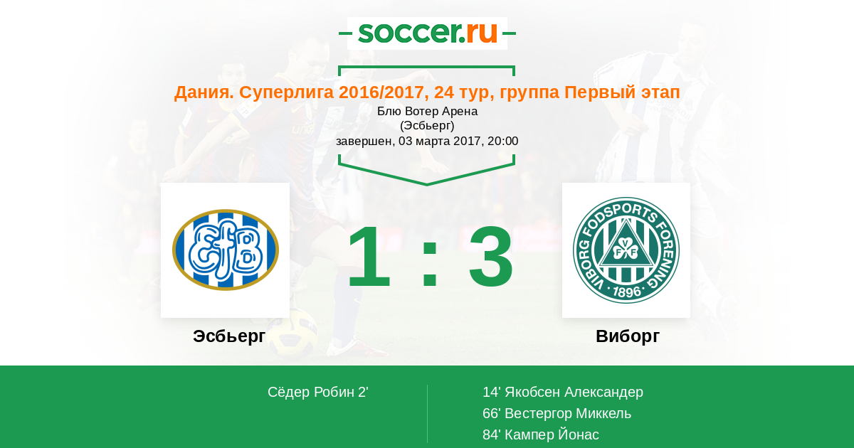 | Эсбьерг | 65:71 | 27:30 | 38:41 |