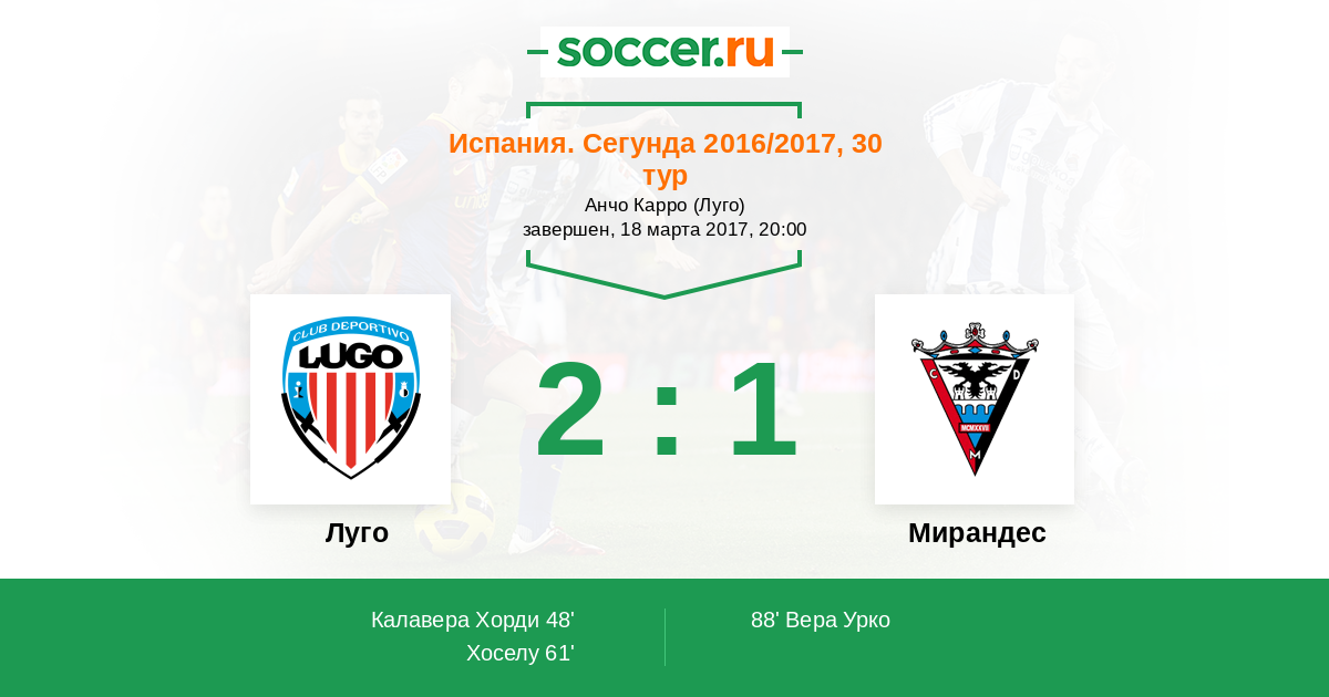 | Испания. Сегунда Б: Группа 1 | 2 | 0 | 1 | 1 |