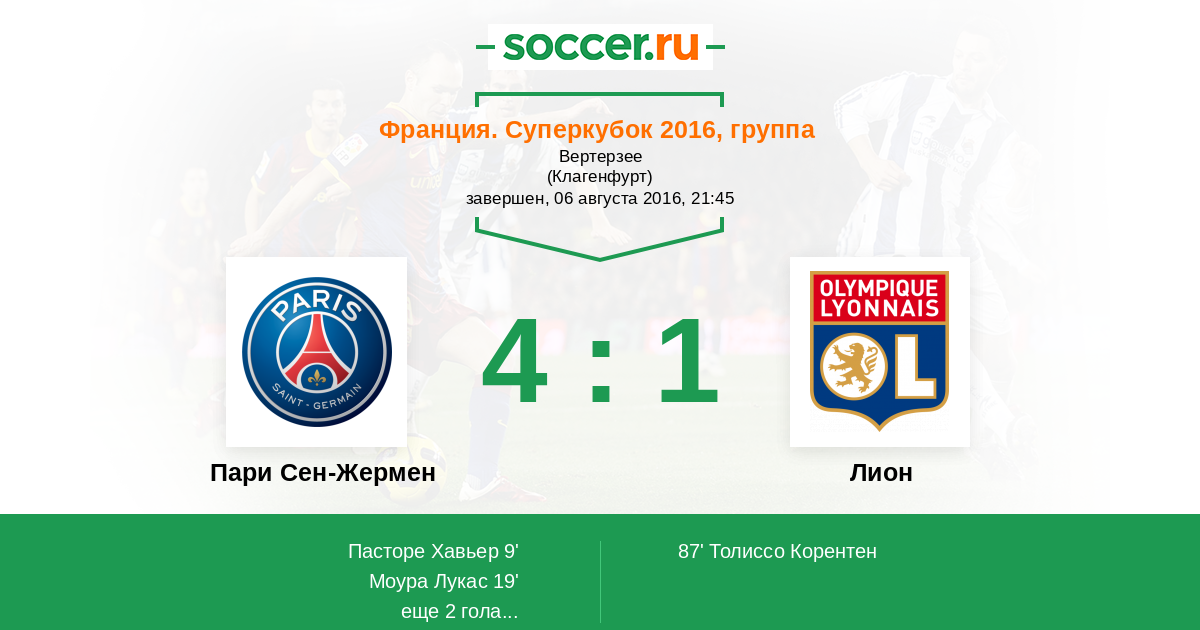 | Франция. Суперкубок | 1 | 1 | 0 | 0 |