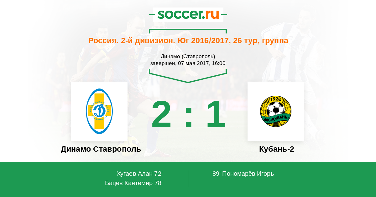 | Кубань-2 | 1:2 | 1:1 | 0:1 |