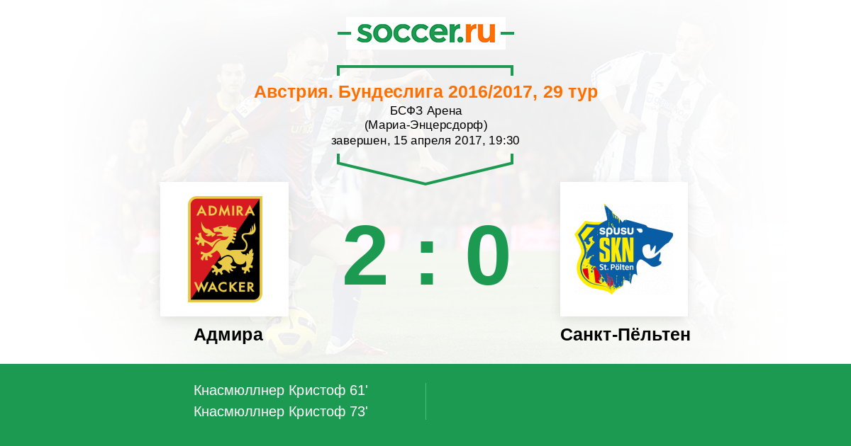| Австрия. Первая Лига | 17 | 9 | 4 | 4 |