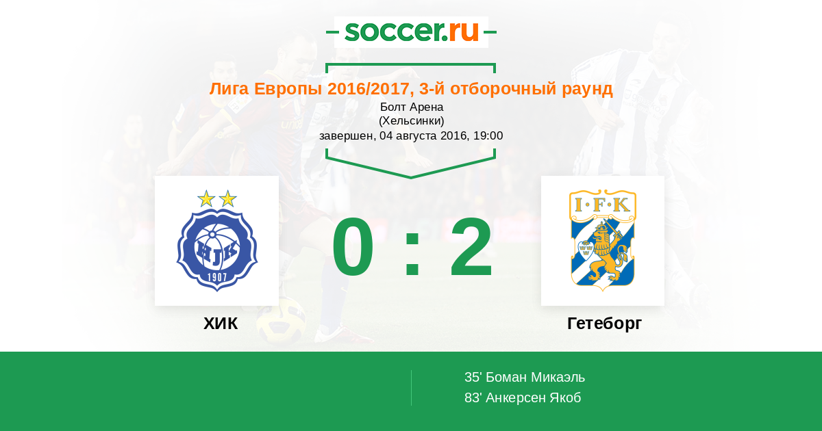 | ХИК | Гетеборг | |