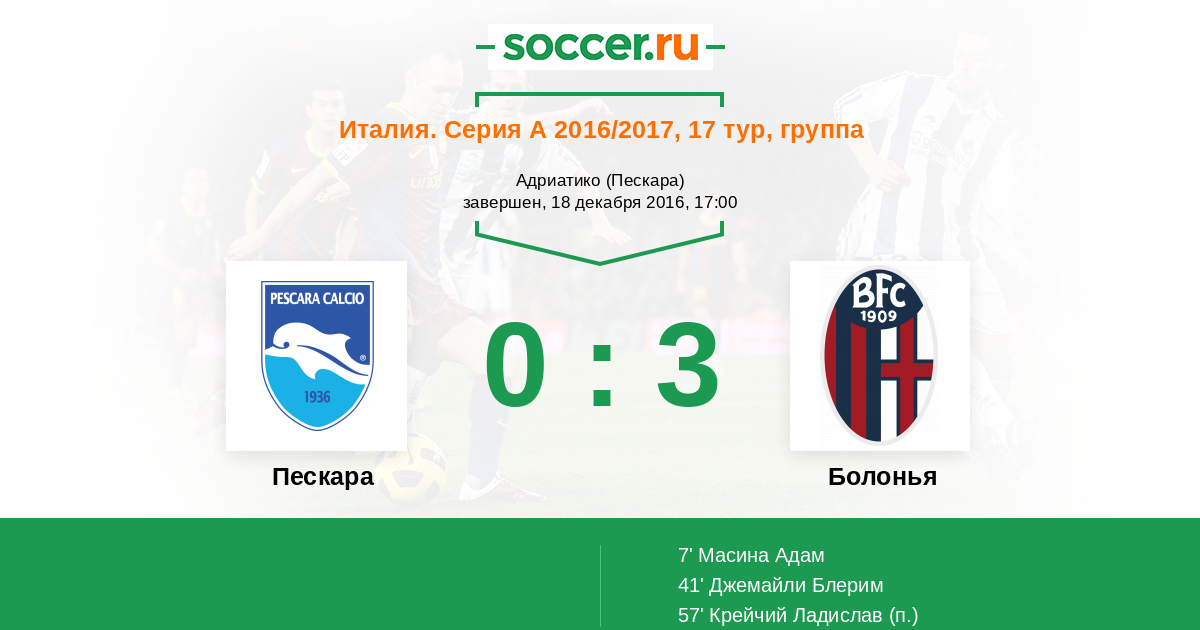 | Пескара | Болонья | |