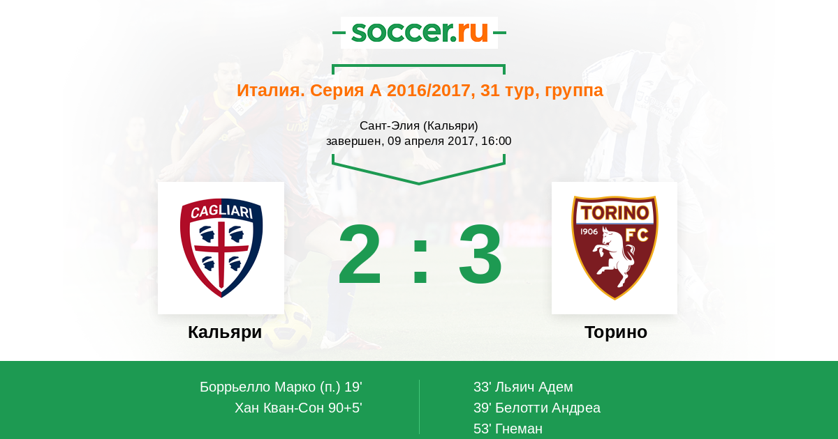 | Кальяри | Торино | |