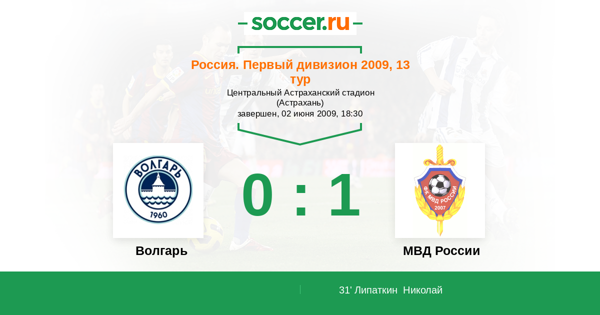 | Россия. Первая лига | 1 | 1 | 0 | 0 |