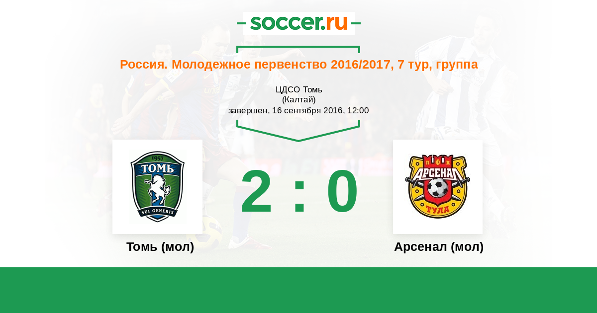 | Томь (мол) | Арсенал (мол) | |