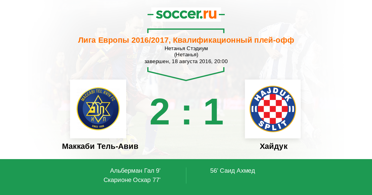 | Маккаби Тель-Авив | 1:2 | 0:0 | 1:2 |