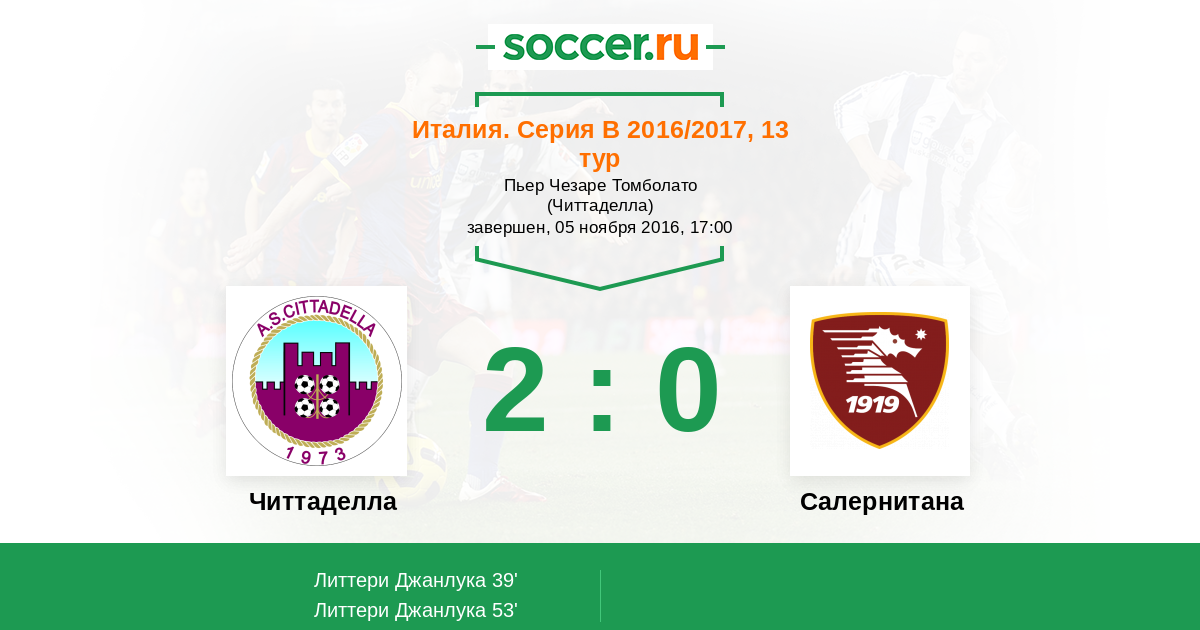 | Салернитана | 34:30 | 21:13 | 13:17 |