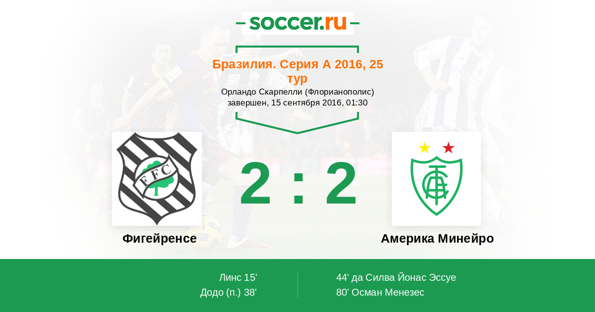 | Америка Минейро | 15:17 | 8:11 | 7:6 |