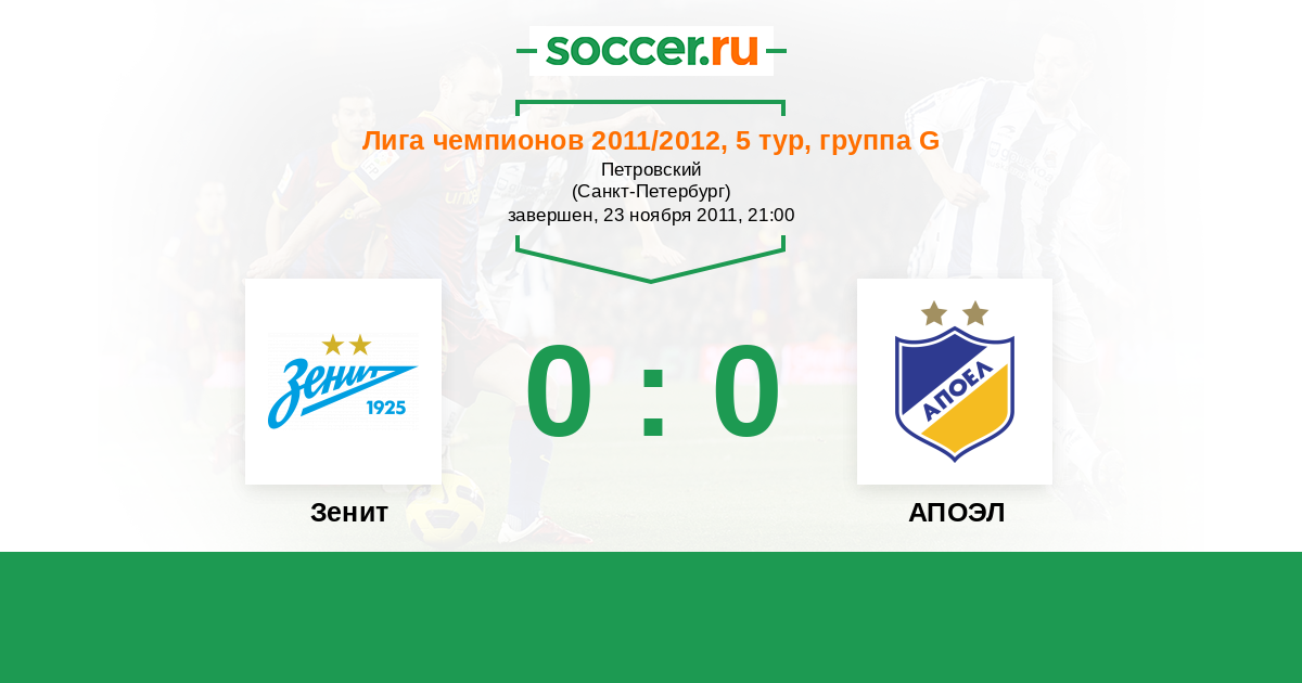 | Зенит | 1:2 | 0:0 | 1:2 |