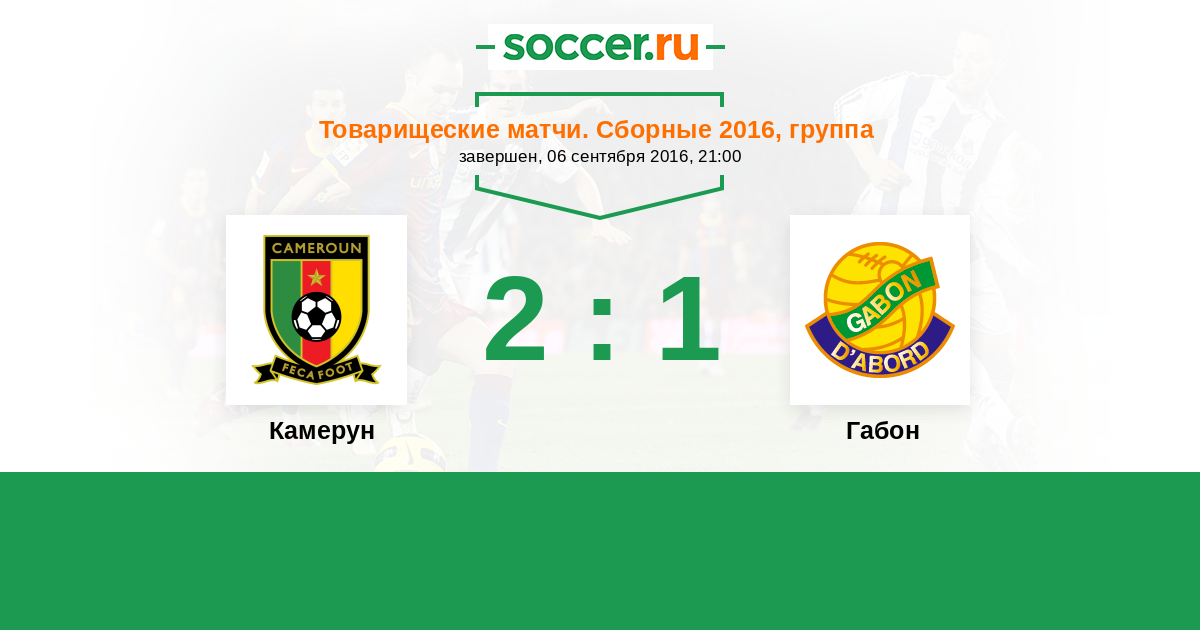 | Камерун | 5:2 | 3:2 | 2:0 |
