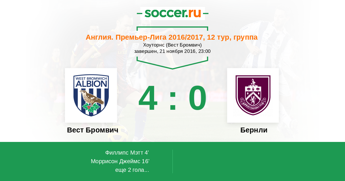 Вест Бромвич 4:1 Бернли