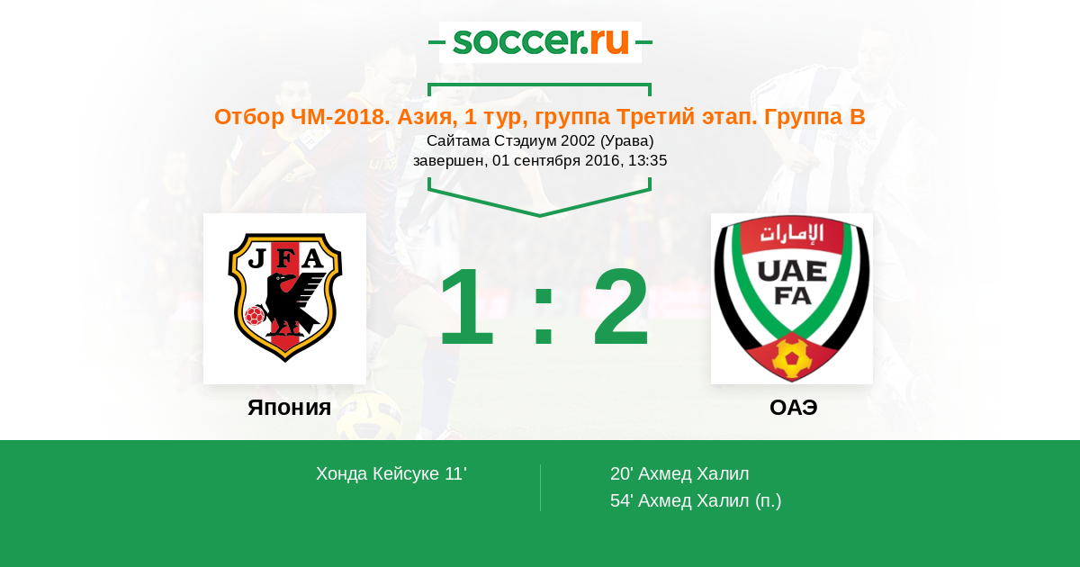| ОАЭ | 1:4 | 0:2 | 1:2 |