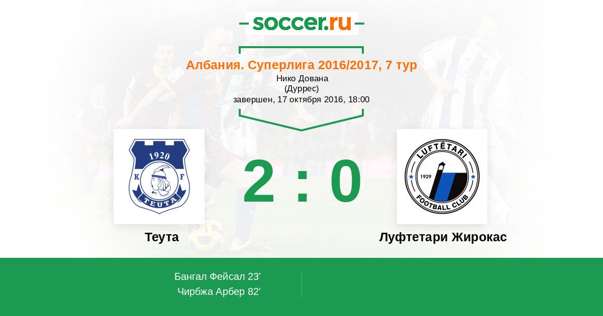 | Албания. Суперлига | 24 | 10 | 8 | 6 |
