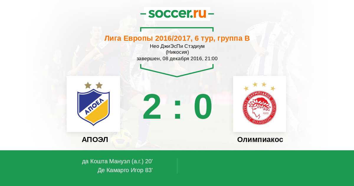 | АПОЭЛ | 1:0 | 0:0 | 1:0 |