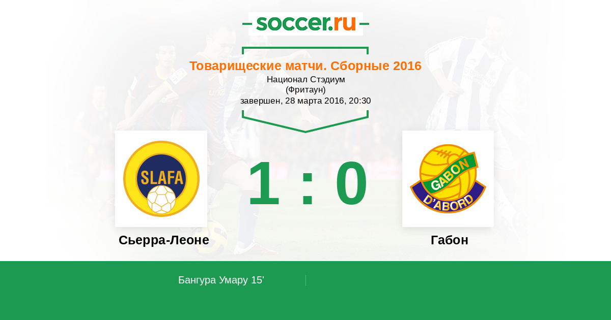 | Сьерра-Леоне | 1:2 | 0:0 | 1:2 |