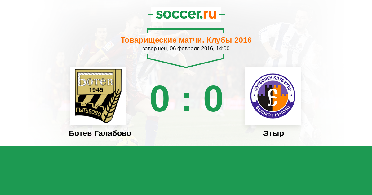 | Ботев Галабово | 0:2 | 0:0 | 0:2 |