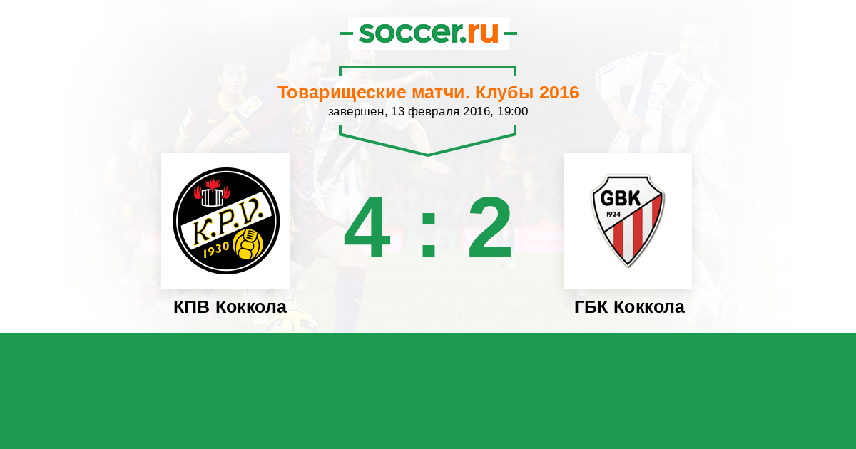 | ГБК Коккола | 0:1 | 0:0 | 0:1 |
