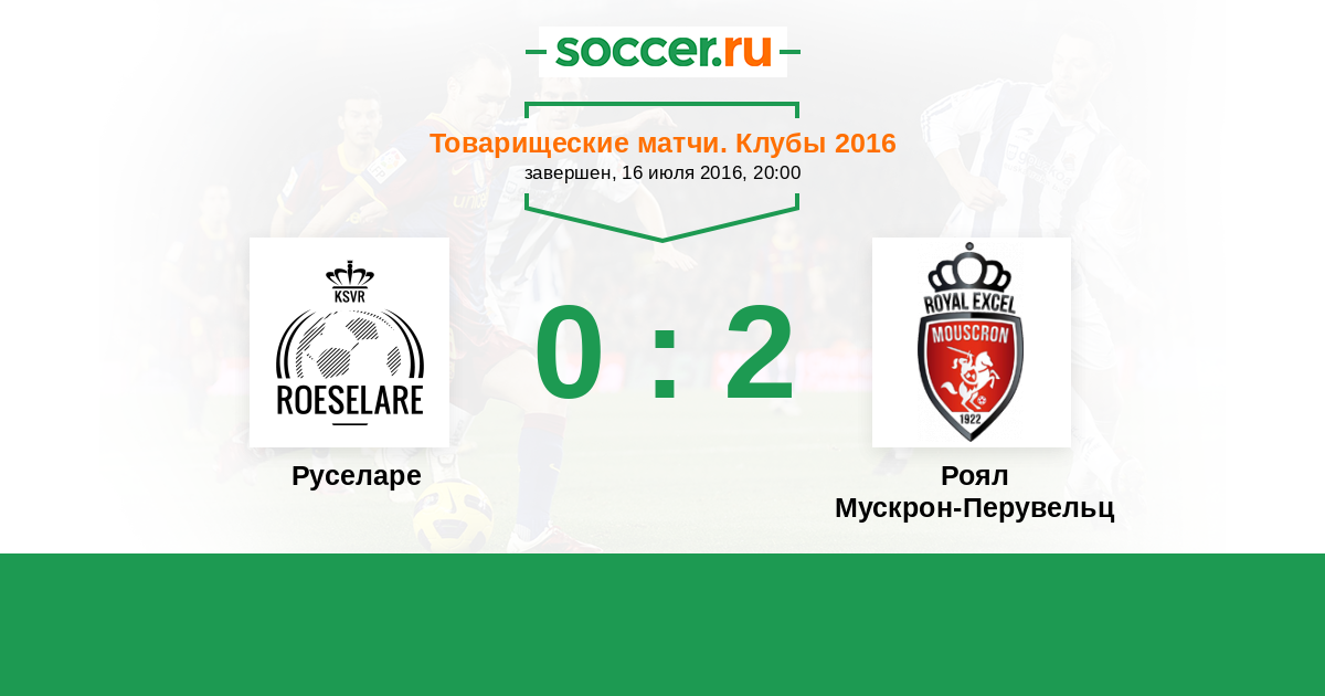 | Роял Мускрон-Перувельц | 6:3 | 1:0 | 5:3 |