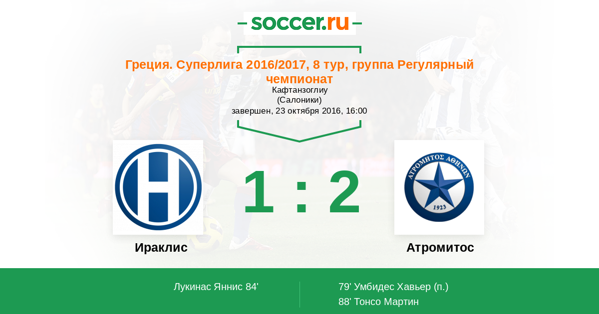 | Атромитос | 2:2 | 2:0 | 0:2 |