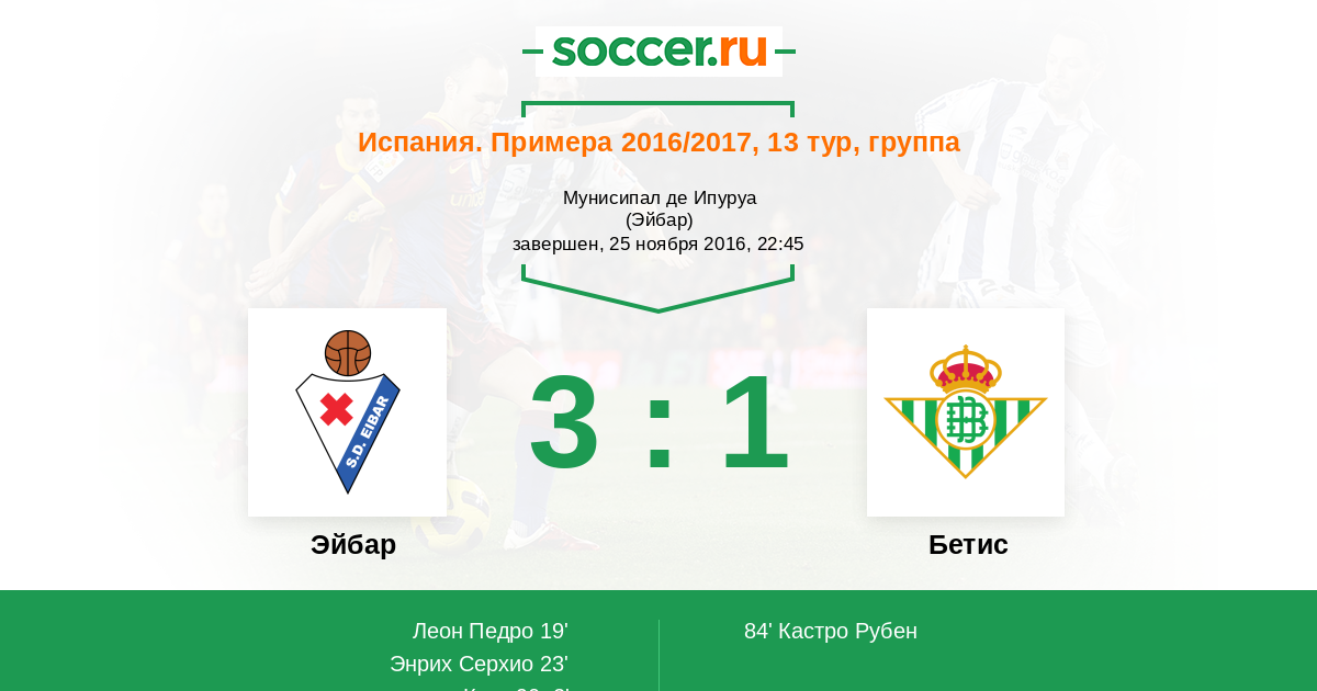 | Эйбар | 17:10 | 9:3 | 8:7 |