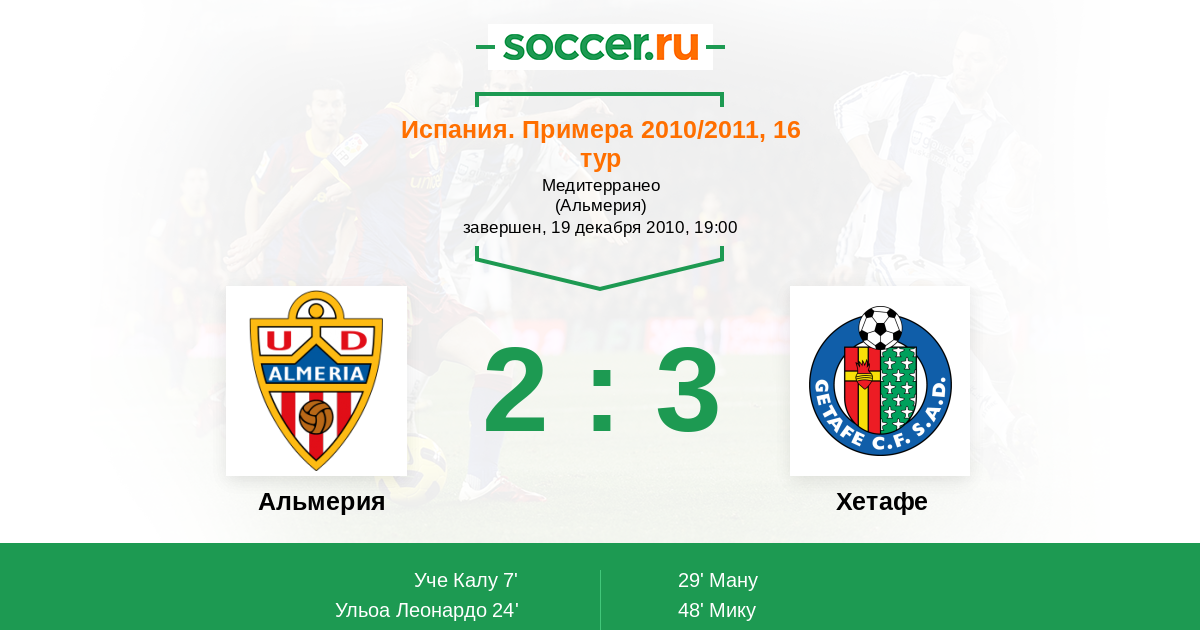 | Альмерия | Хетафе | |