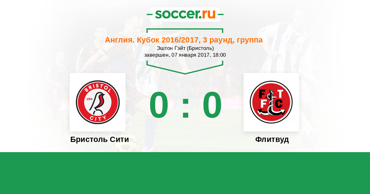 | Флитвуд | 0:1 | 0:1 | 0:0 |