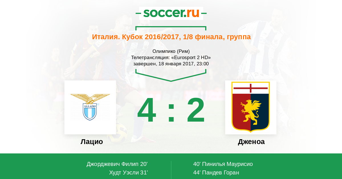 | Дженоа | 44:76 | 22:32 | 22:44 |