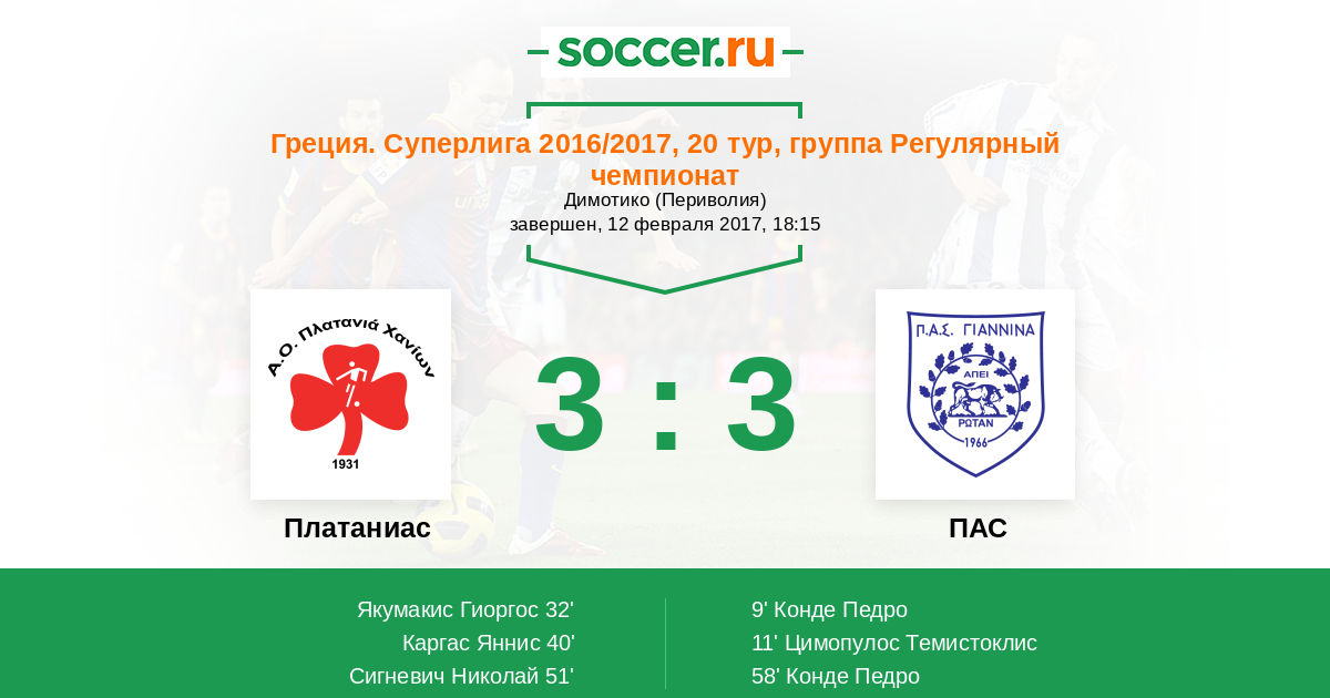 | Платаниас | 2:13 | 1:6 | 1:7 |