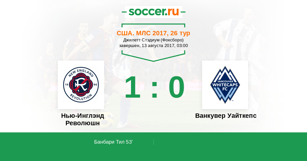 | Нью-Инглэнд Революшн | Ванкувер Уайткепс | |