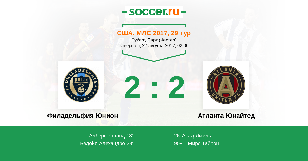 | Филадельфия Юнион | Атланта Юнайтед | |