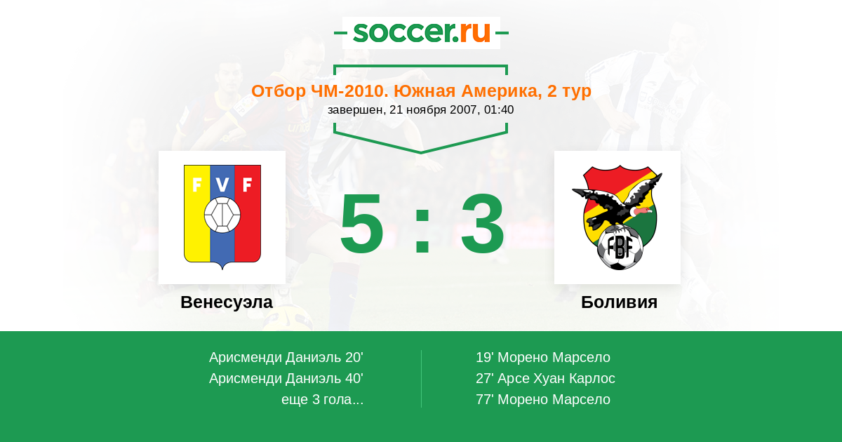 | Венесуэла | 37:29 | 23:8 | 14:21 |