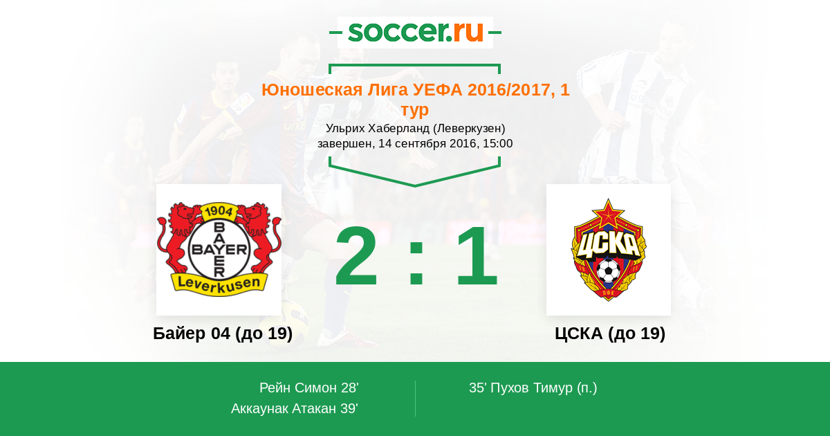 | Байер 04 (до 19) | ЦСКА (до 19) | |
