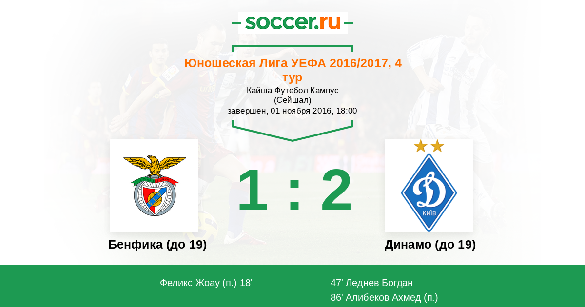 | Бенфика (до 19) | Динамо (до 19) | |