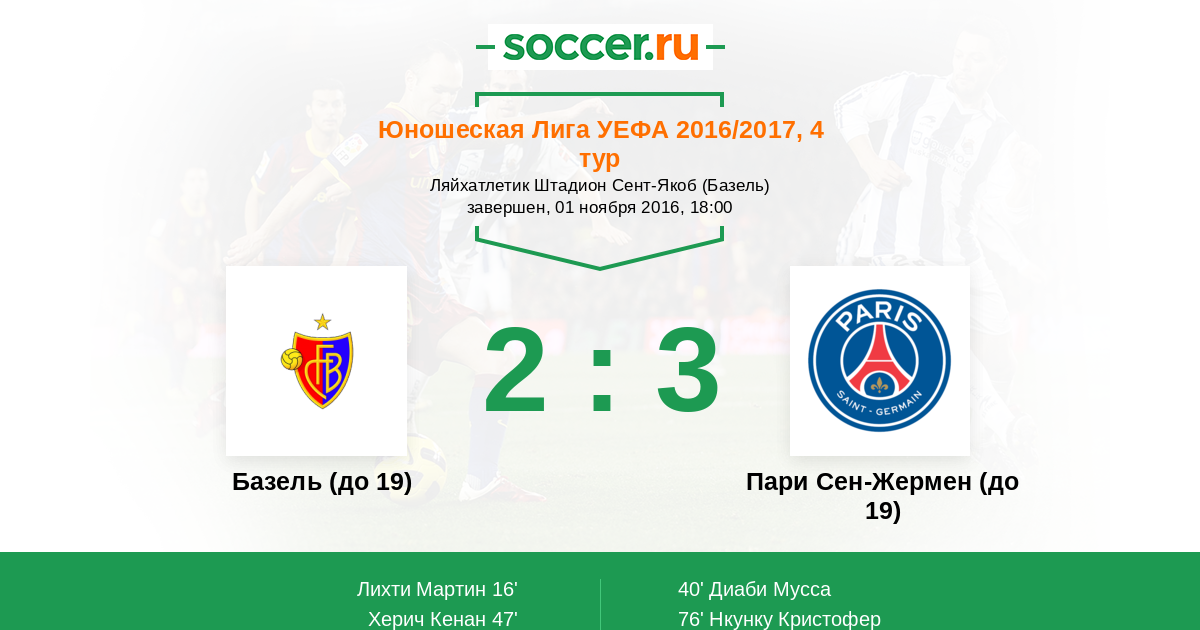 | Базель (до 19) | Пари Сен-Жермен (до 19) | |