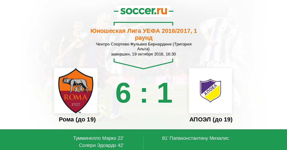 | Рома (до 19) | АПОЭЛ (до 19) | |