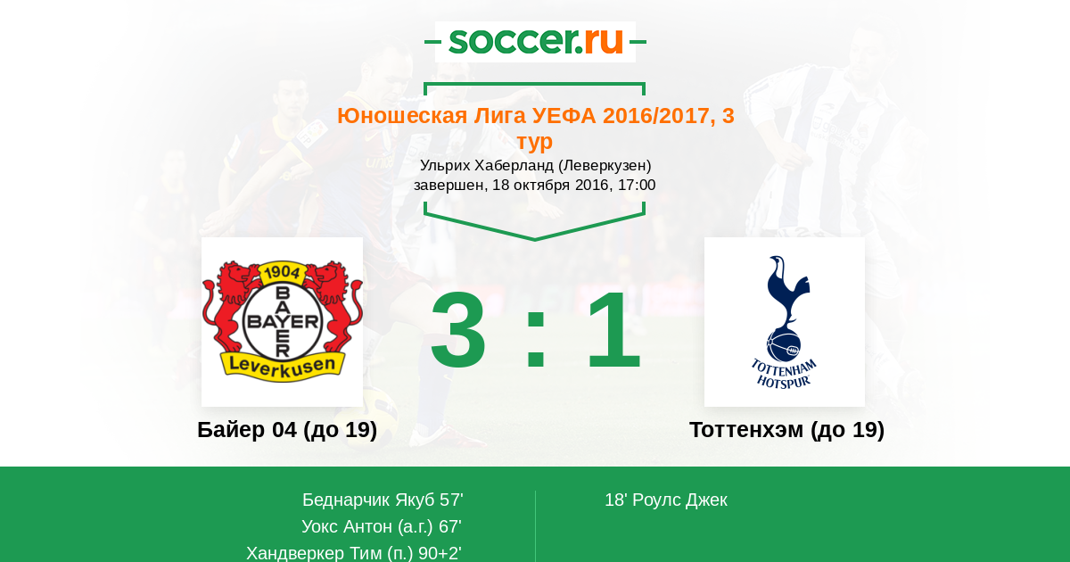 | Байер 04 (до 19) | Тоттенхэм (до 19) | |