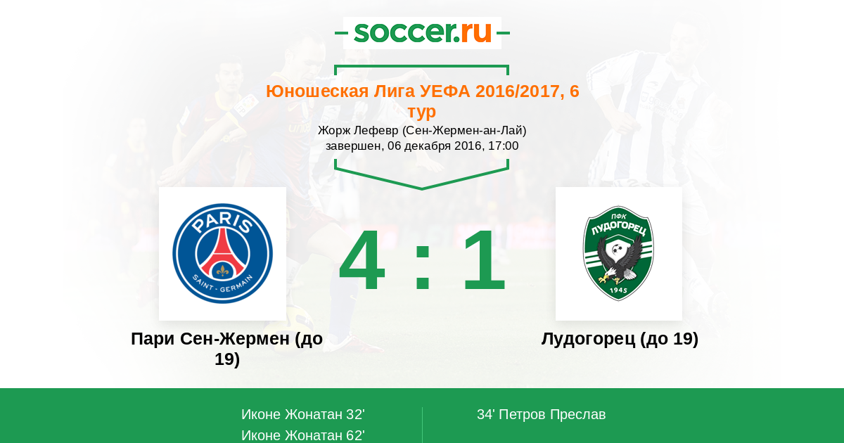 | Пари Сен-Жермен (до 19) | Лудогорец (до 19) | |