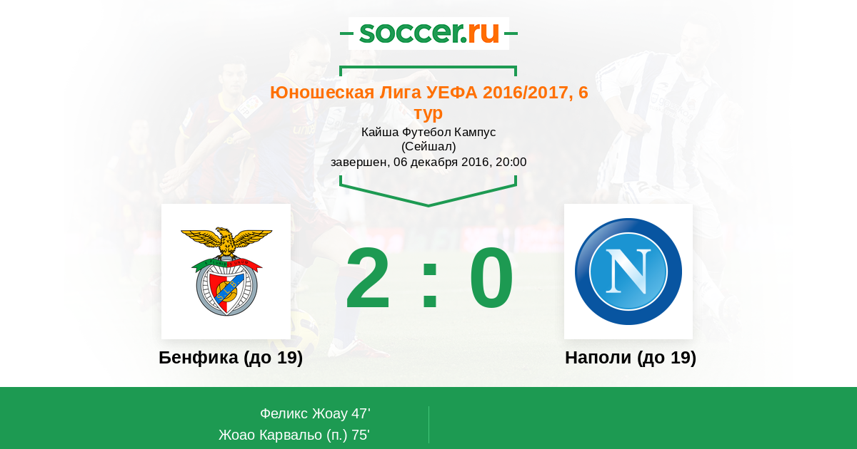 | Бенфика (до 19) | 6:2 | 3:0 | 3:2 |