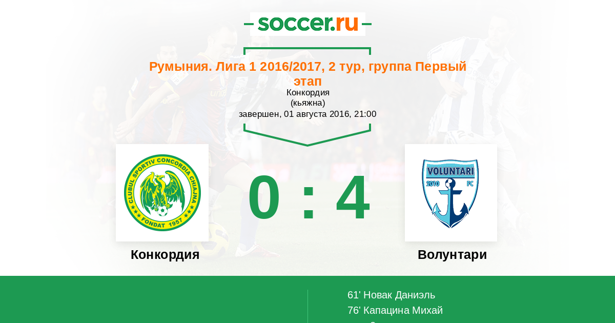 | Конкордия | 16:25 | 7:12 | 9:13 |