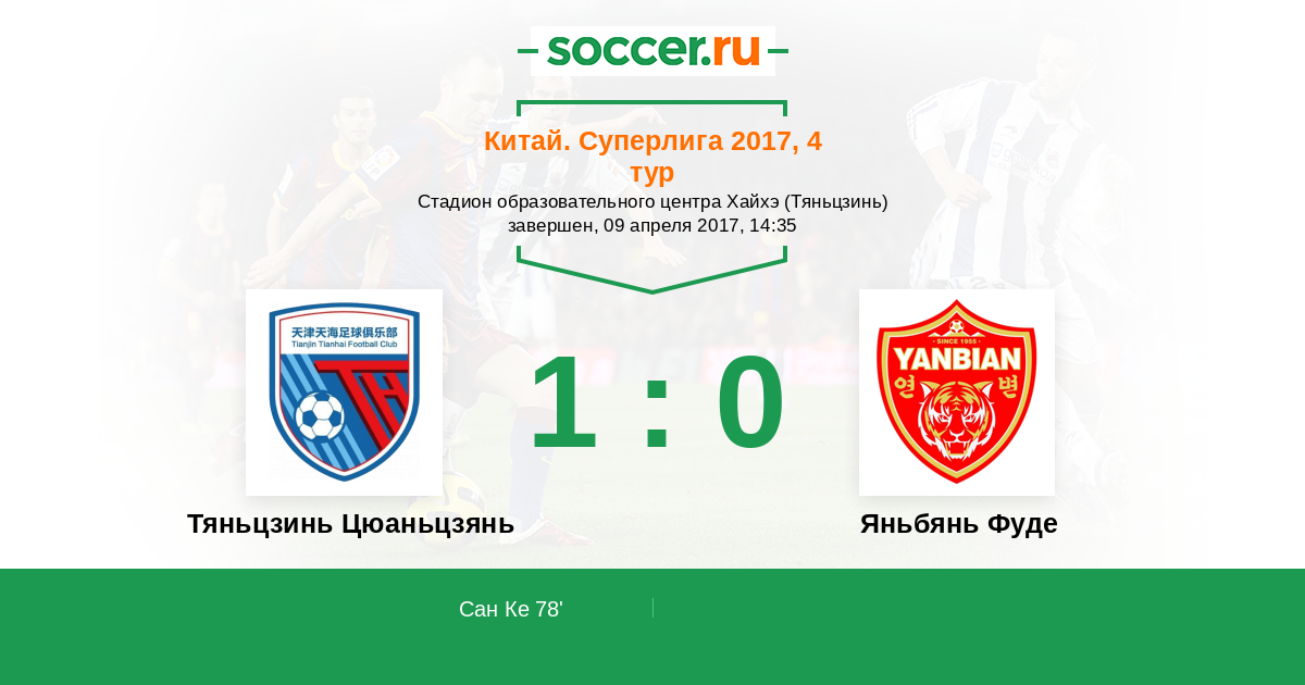 | Тяньцзинь Цюаньцзянь | 2:0 | 0:0 | 2:0 |