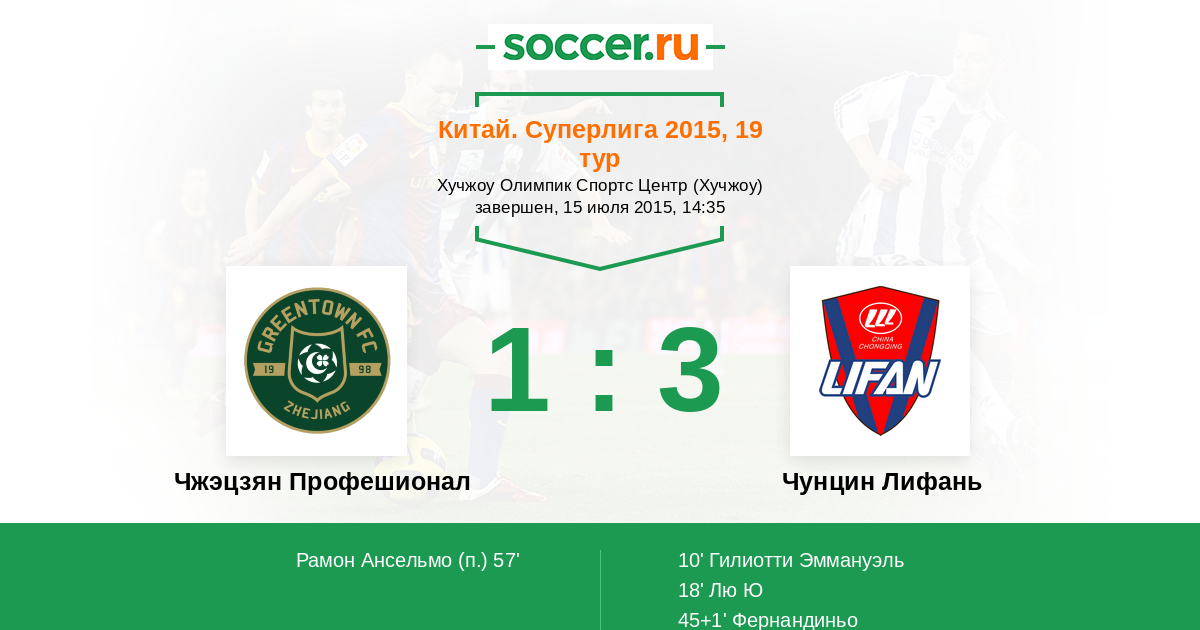 | Чжэцзян Профешионал | Чунцин Лифань | |