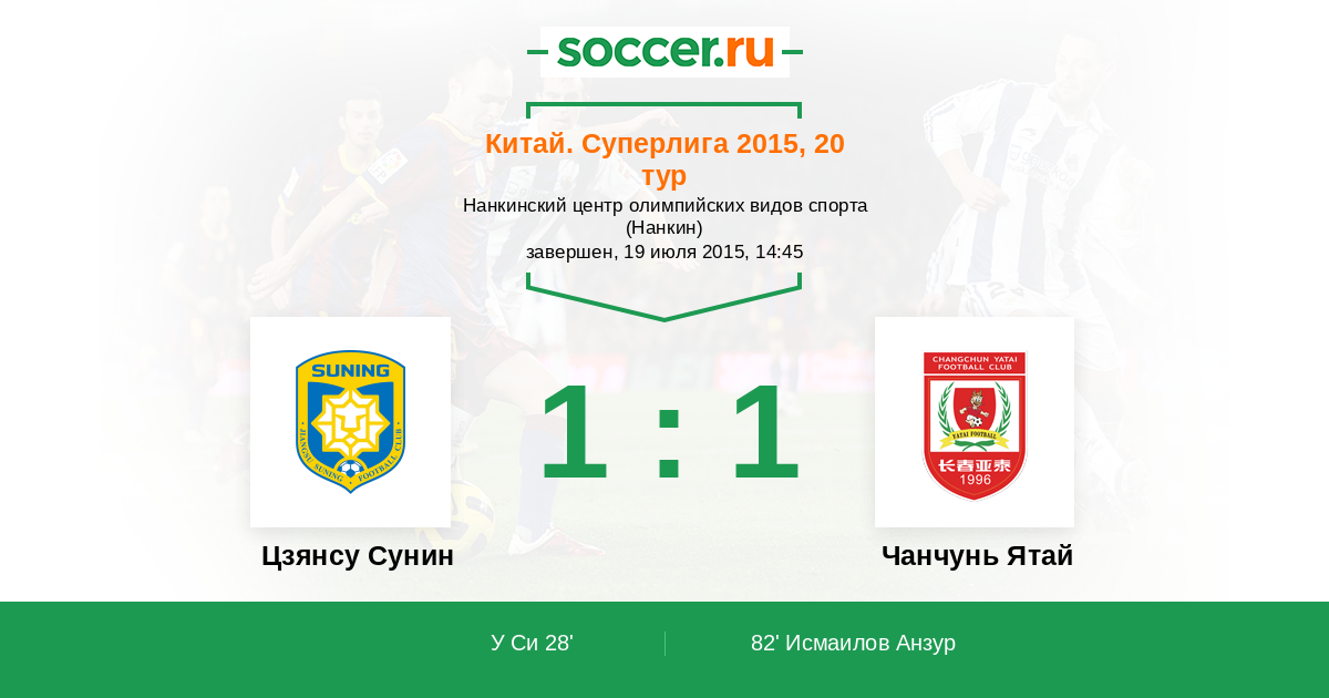 | Цзянсу Сунин | Чанчунь Ятай | |