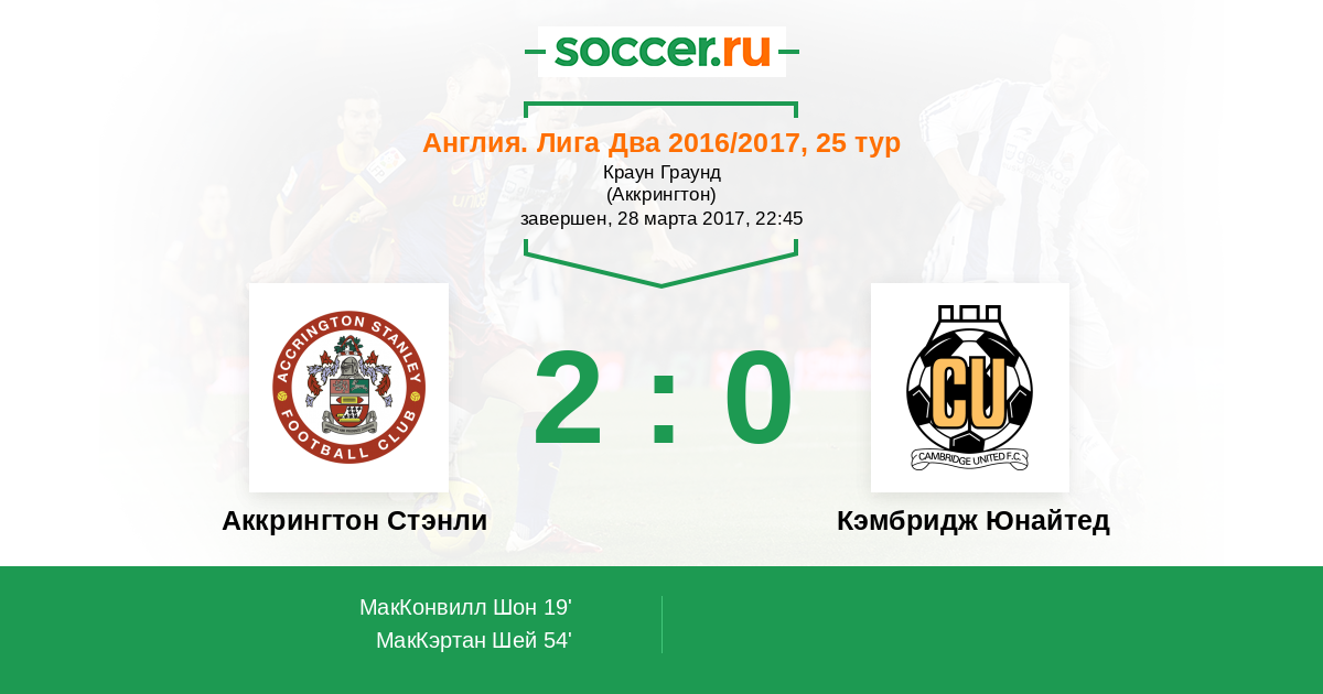 | Аккрингтон Стэнли | Кэмбридж Юнайтед | |