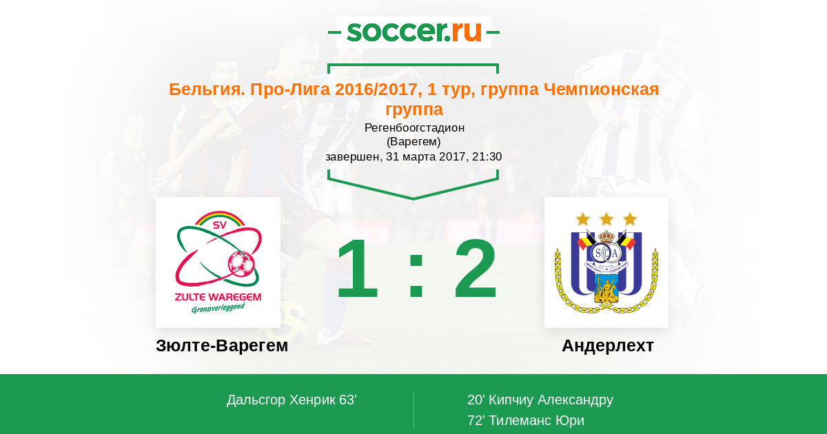 | Зюлте-Варегем | Андерлехт | |