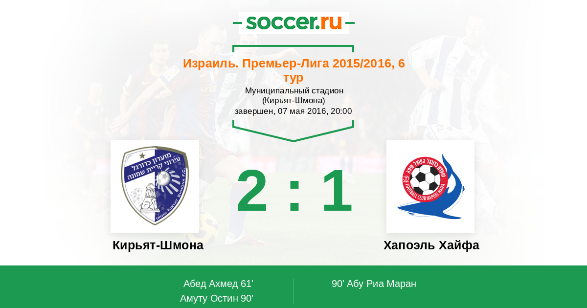 | Кирьят-Шмона | Хапоэль Хайфа | |