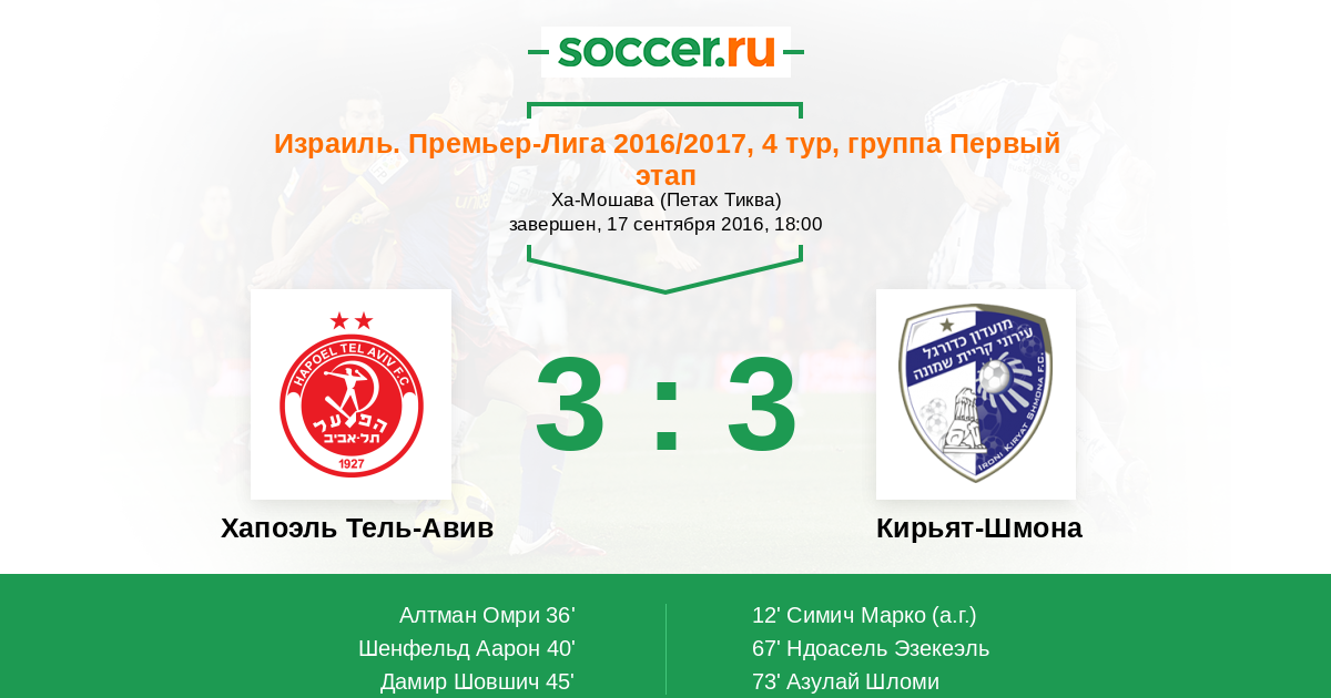 | Хапоэль Тель-Авив | Кирьят-Шмона | |