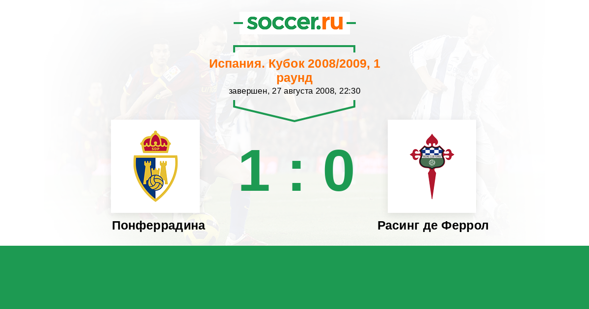 | Расинг де Феррол | 2:0 | 2:0 | 0:0 |